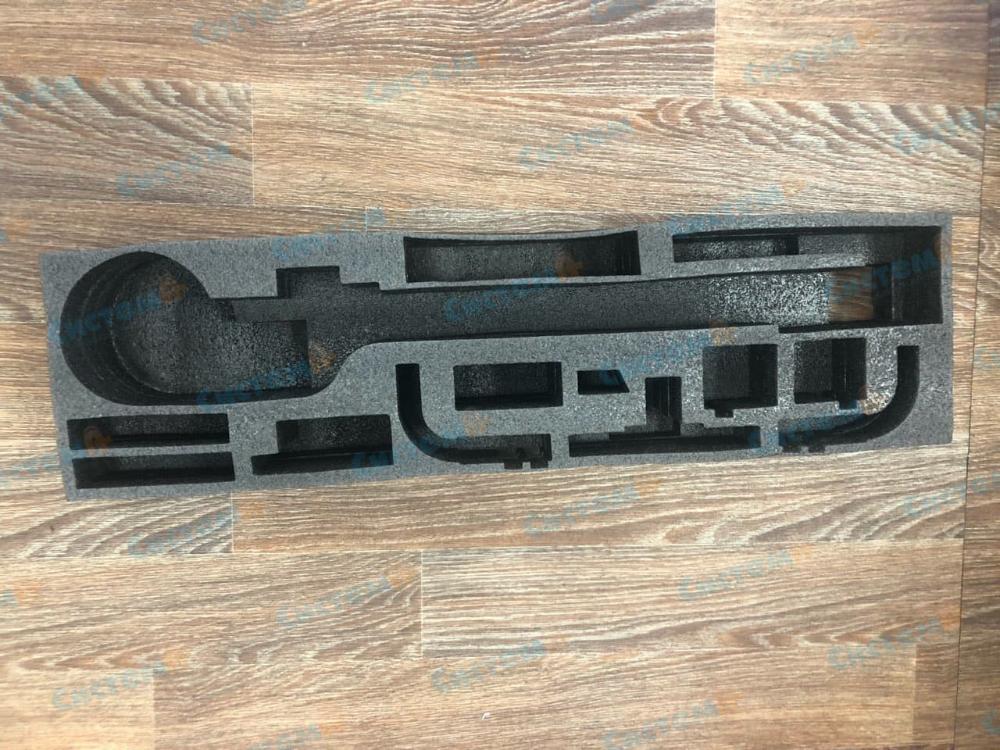 Заказчик обозначил главные функции - защита от повреждений во время транспортировки, презентабельный внешний вид. Мы предложили использовать сшитый или несшитый пенополиэтилен - эти материалы отвечают указанным характеристикам. Выбор остановили на несшитом вспененном полиэтилене - он бюджетный, легкий, мягкий, устойчив к разрывам, поэтому идеален для защитной транспортировочной упаковки.